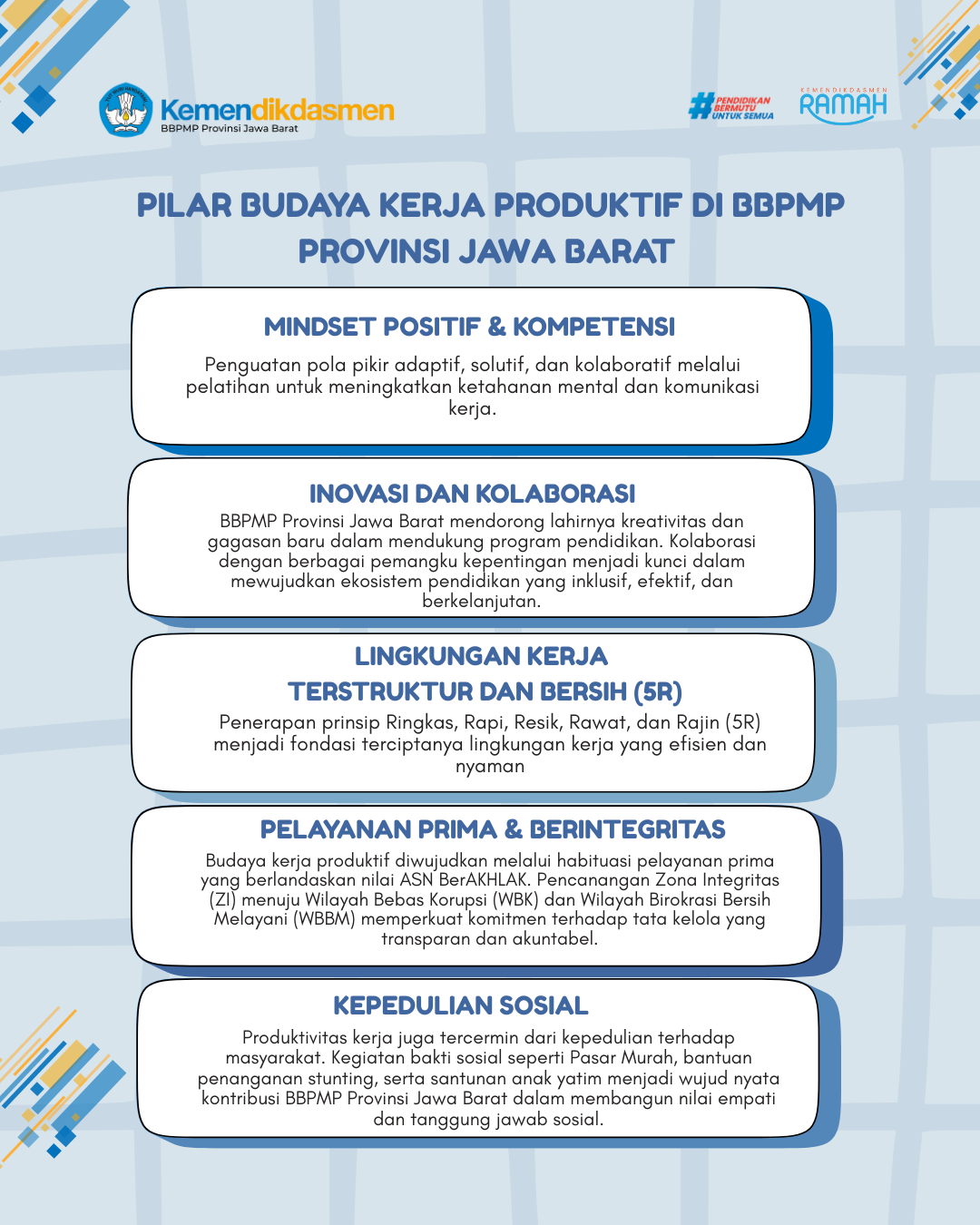 Berbagai informasi kegiatan di lingkungan BBPMP Provinsi Jawa Barat yang kami sajikan ke hadapan Anda dan dikemas dalam bentuk poster.